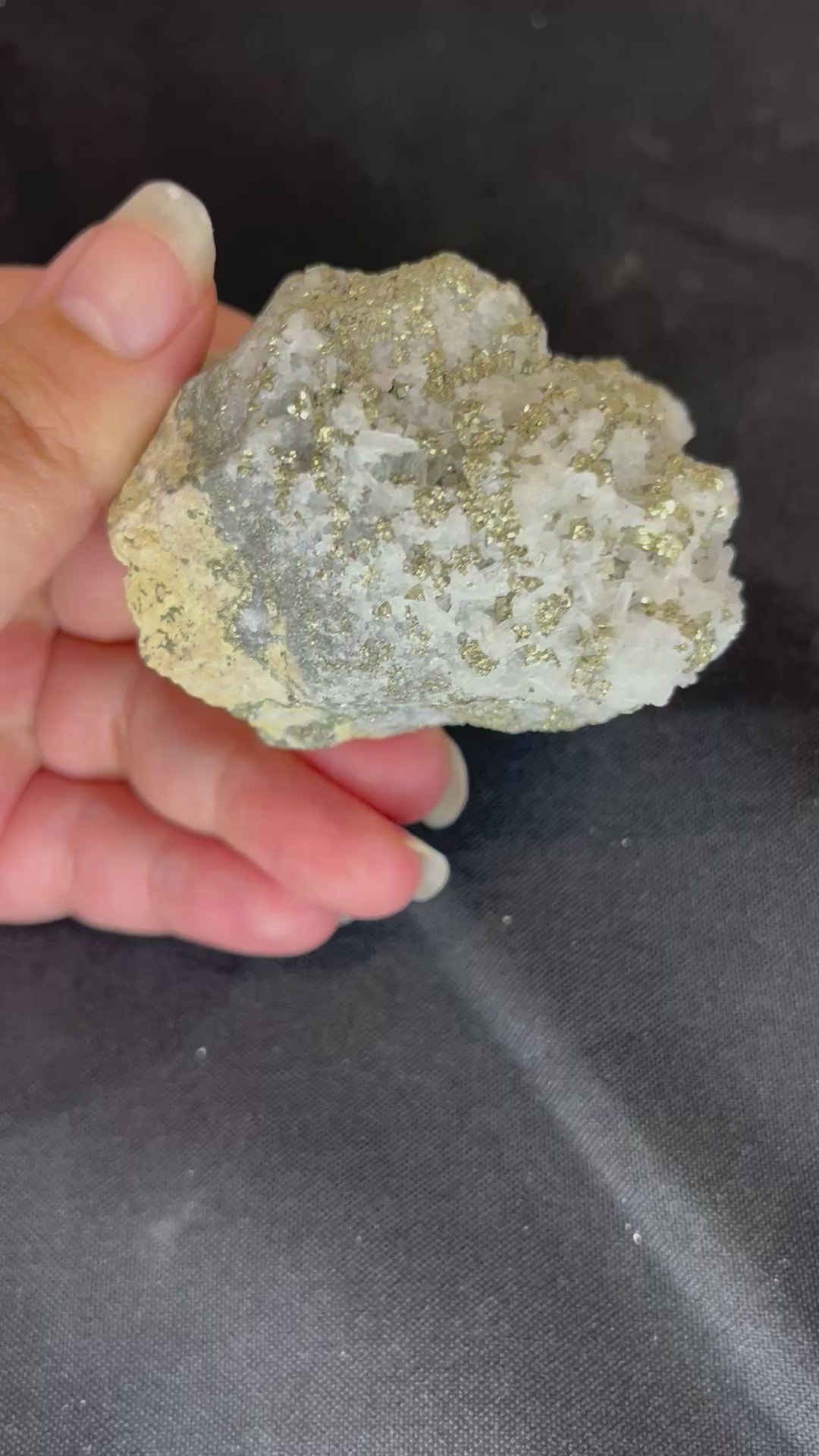 This stunning natural cluster combines the grounding energy of Quartz with the golden sparkle of Pyrite, creating a piece that radiates confidence and abundance. The Pyrite crystals shimmer beautifully across the Quartz base, catching the light with every angle — a true statement specimen for any collection or altar.